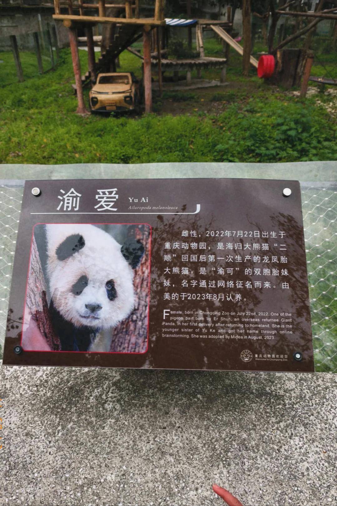渝爱,生于2022年7月22日,重庆动物园,父亲青青,母亲二顺,双胞胎哥哥渝可。